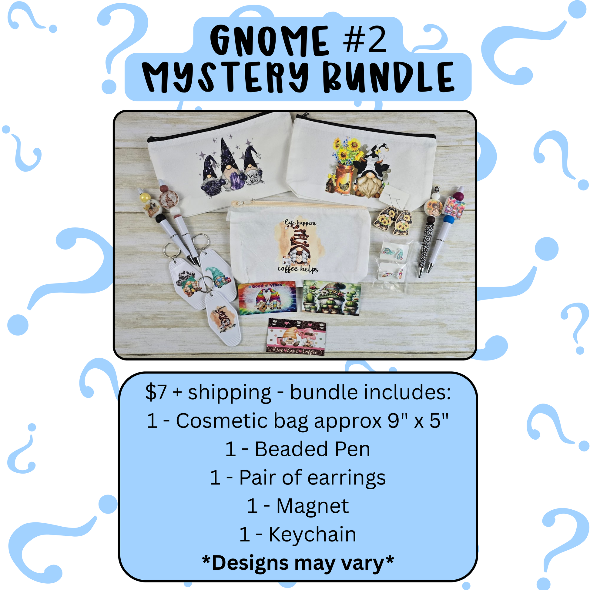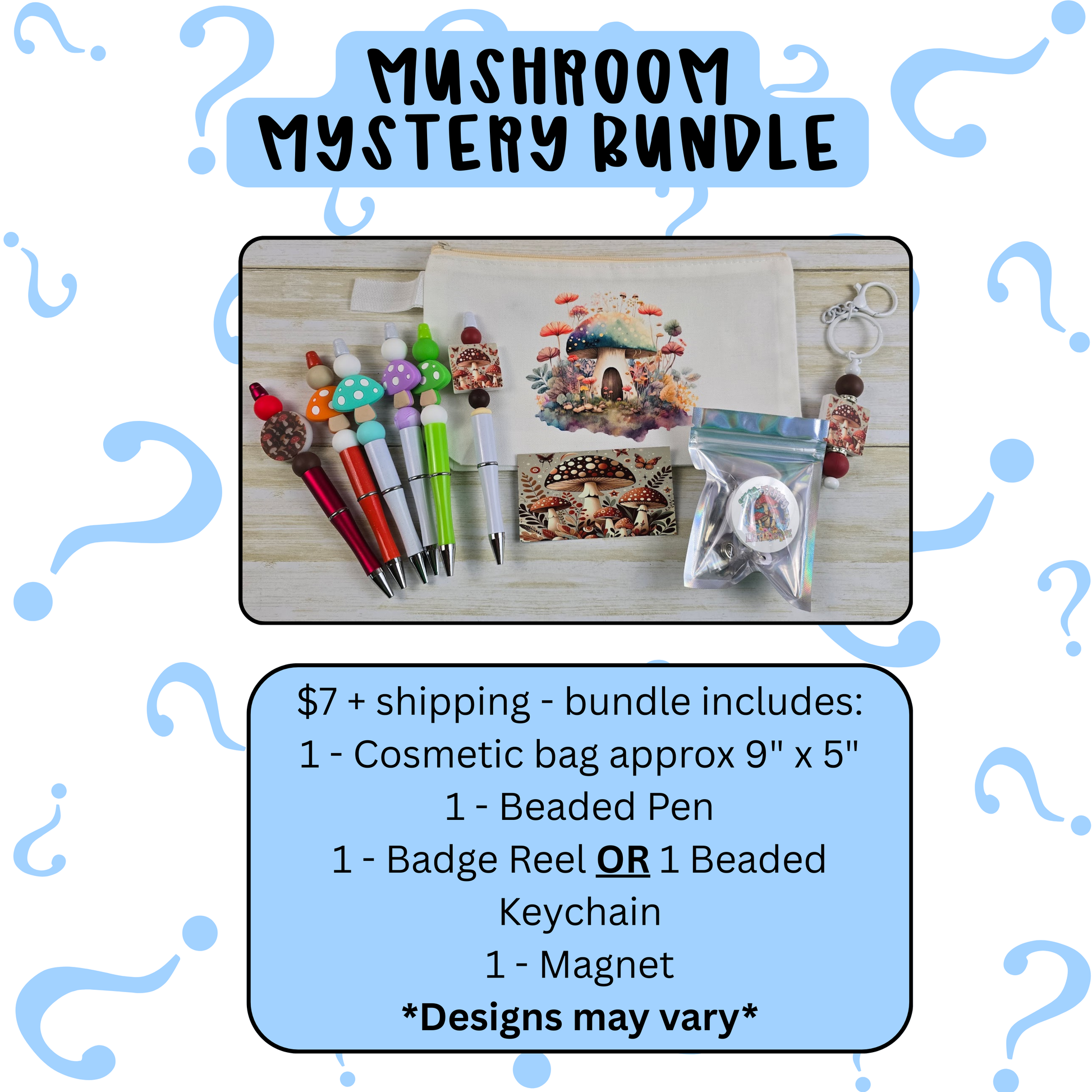 -Plus a mix of surprise goodies like: Earrings, Bookmark, Keychain, Beaded keychain, OR Badge reel